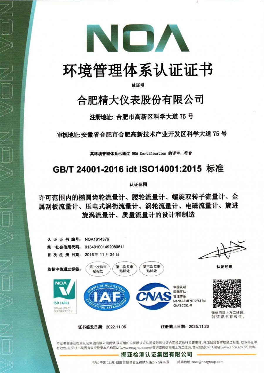 環(huán)境管理體系認(rèn)證證書