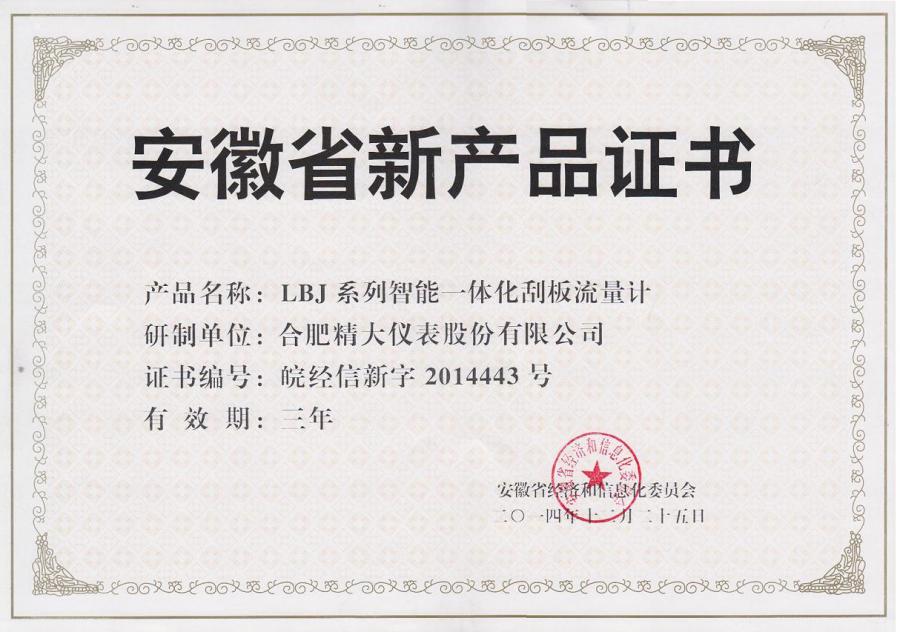 安徽省新產(chǎn)品證書(shū)(LBJ型)
