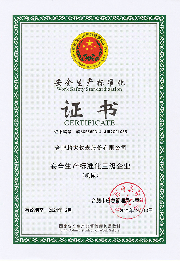 安全生產(chǎn)標(biāo)準(zhǔn)化證書